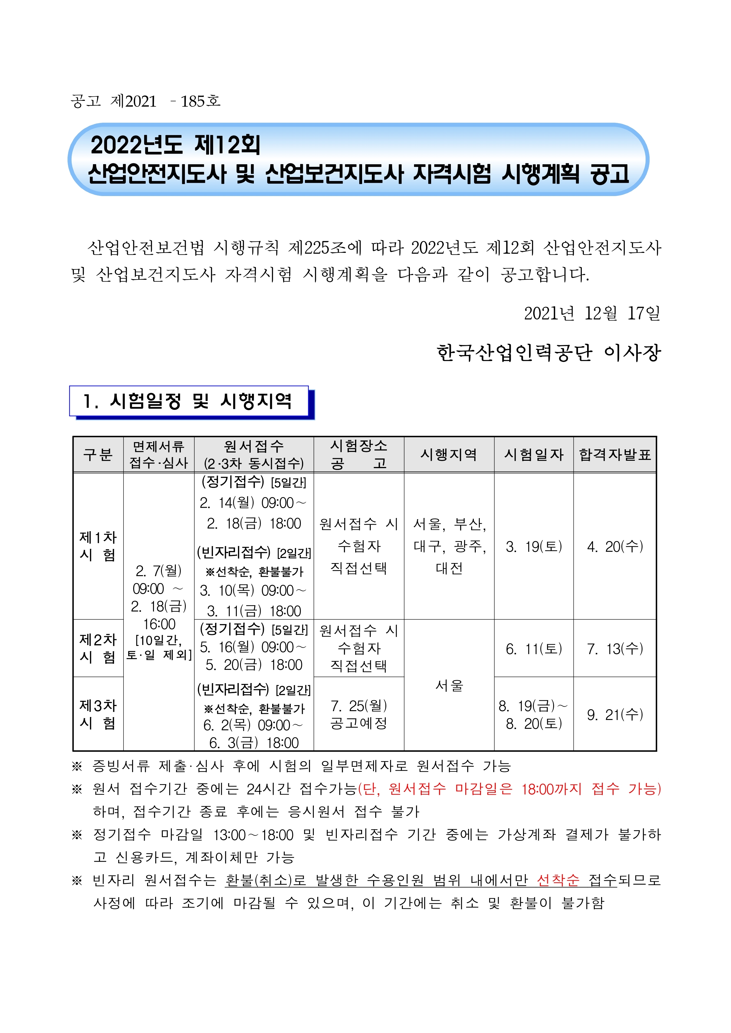 | 한국산업인력공단 2022년 큐넷시험일정(2022년도 국가기술자격 시행공고) (0) | 2021.12.28 |